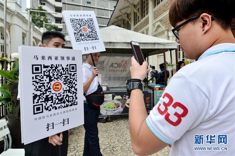 8月23日,在马来西亚吉隆坡,一名游客使用手机扫描“马来西亚领事通”二维码。 马来西亚-中国旅游促进协会23日在吉隆坡举行“马来西亚领事通”微信公众号推广活动,以帮助中国游客了解在马旅游注意事项和领事保护信息,加强对游客的安全保障。 新华社发(张纹综摄)