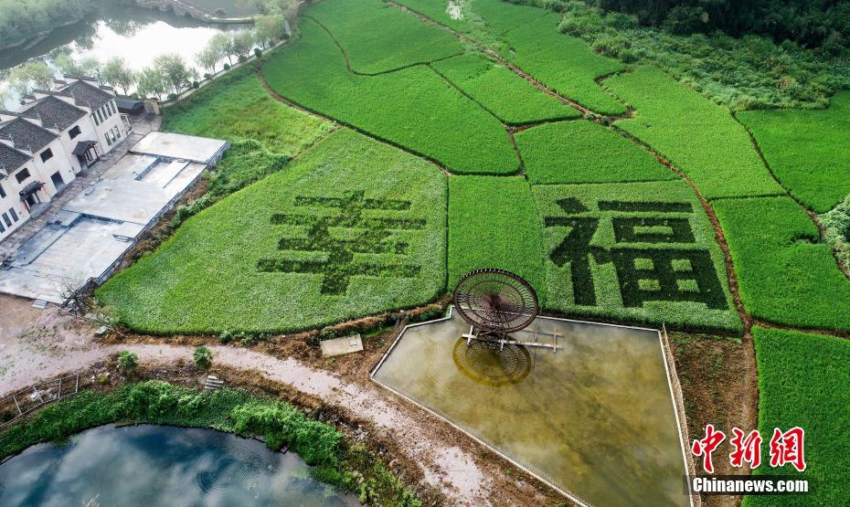 彩色稻田里的“幸福”字样。鲍赣生 摄