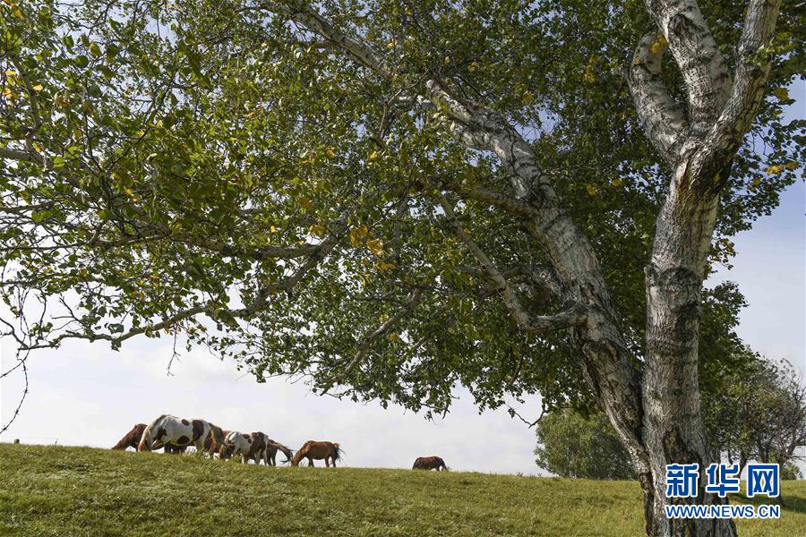 9月1日,马群在内蒙古乌兰布统草原上吃草。新华社发(刘满仓 摄)