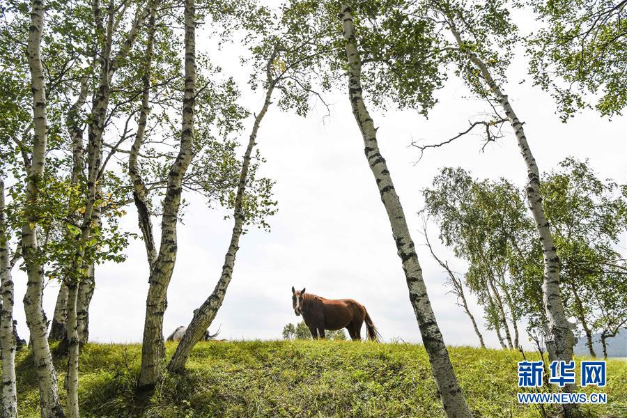 9月1日,一匹马在内蒙古乌兰布统草原上吃草。新华社发(刘满仓 摄)