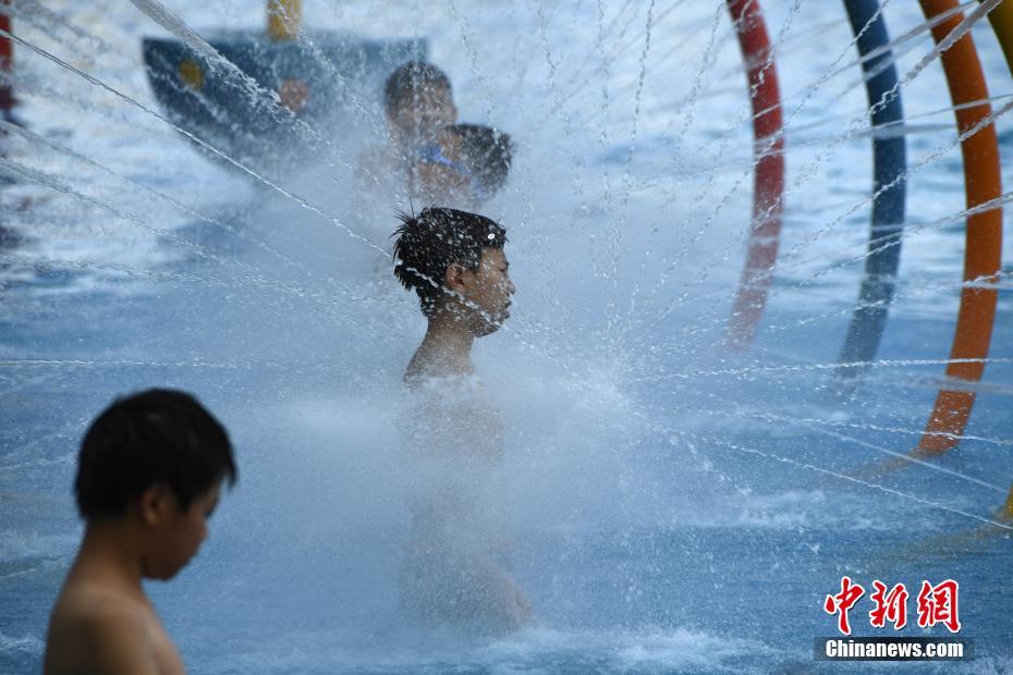 9月5日,众多因高温天气推迟入学的学生在洋人街水上乐园内戏水纳凉。当日,重庆市气象台已经是连续第9天发布“高温橙色预警信号”。陈超 摄