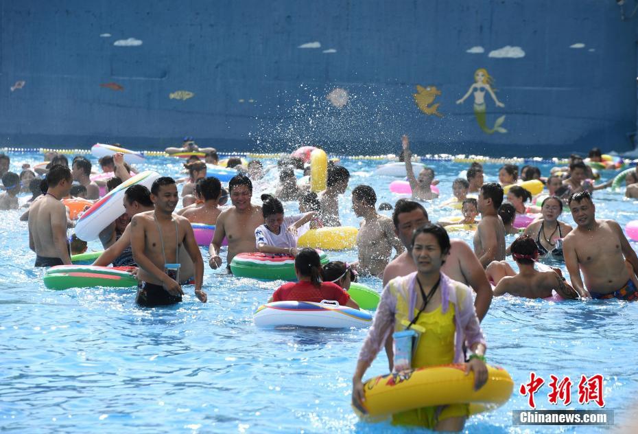 “火炉”重庆连发九天高温预警 民众水中避暑