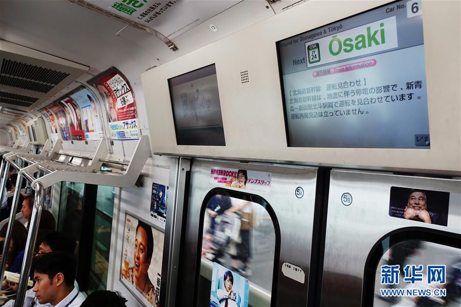 9月6日,在日本东京的列车上,显示屏显示北海道新干线因地震和停电影响停运。据中国地震台网中心网站消息,日本北海道6日发生6.9级地震。目前,地震已造成至少2人死亡、125人受伤、39人失踪。暂无中国公民伤亡的报告。新华社记者 杜潇逸 摄