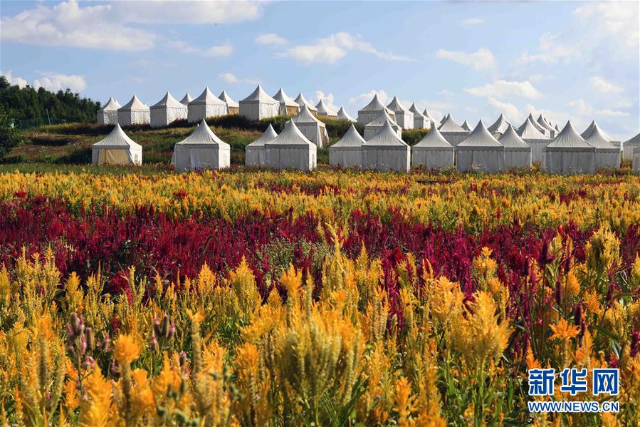 云南罗平七彩花田中的帐篷酒店(9月5日摄)。 新华社记者杨宗友摄