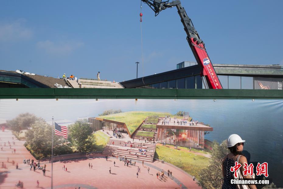 当地时间9月6日,在纽约新自由女神像博物馆建设工地的围墙展示着新馆全景图。由民众捐款筹资建设的新自由女神像博物馆将于2019年5月免费向公众开放。中新社记者 廖攀 摄