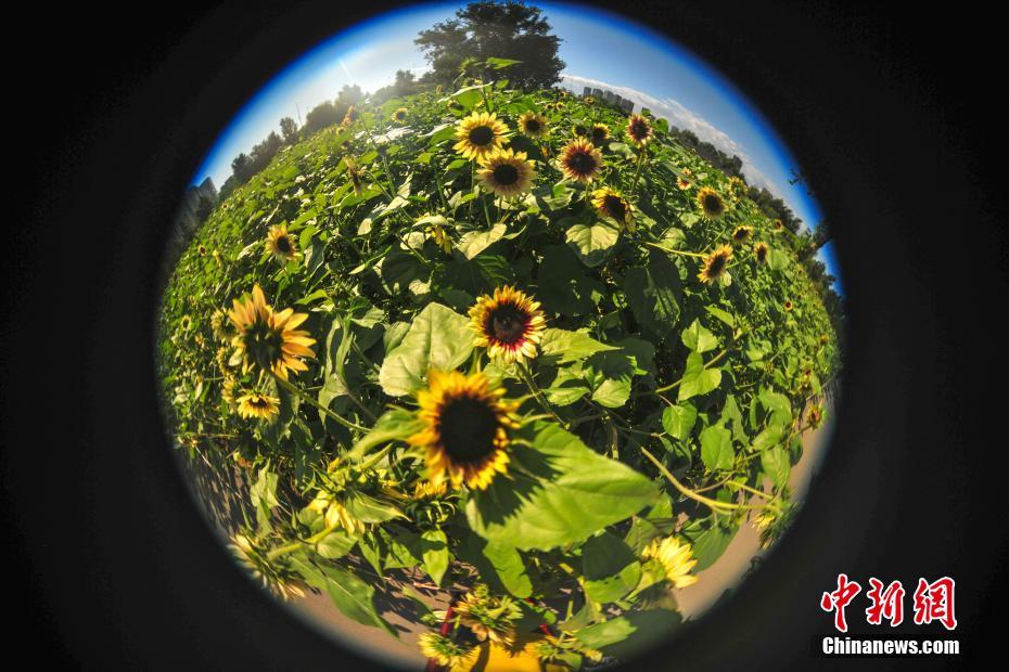 9月7日,公园内绽放的向日葵花。第四届浑河之夏向日葵花展正在沈阳进行,据悉,本届花展花海面积达两万多平方米,种植的葵花种类达11种。中新社记者 于海洋 摄
