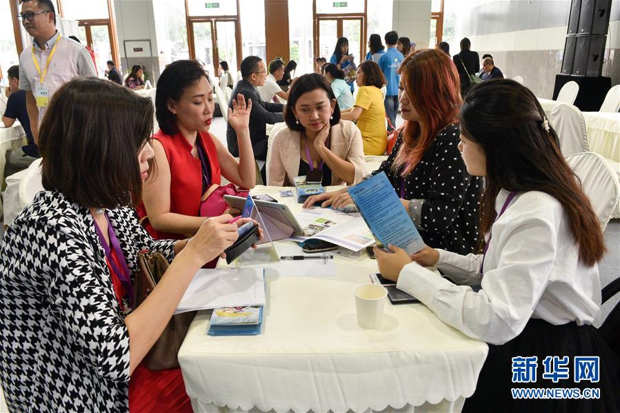 9月7日,参会者在进行交易洽谈。 当日,第五届四川国际旅游交易博览会在四川峨眉山市开幕。来自58个国家和地区的3000余名旅游界嘉宾云集峨眉山麓,重点围绕形象展示推广和产品展示销售、企业商务洽谈、旅游商品大赛三个板块,进行旅游产业的交流。 新华社发(吕明泽 摄)