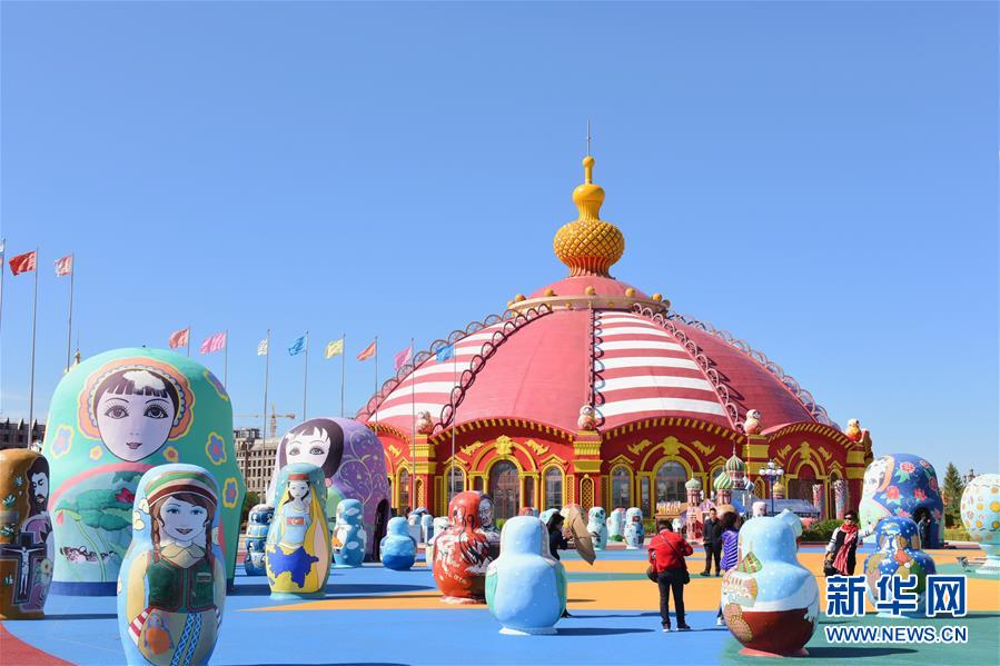 游客在满洲里套娃广场游览(9月6日摄)。内蒙古自治区满洲里市位于中俄边境地区,改革开放以来,凭借独特地缘优势,已发展成为中国最大的陆运口岸城市。2017年,中俄双边贸易额超过840亿美元,同比增长20.8%,满洲里口岸承担着中俄贸易60%以上的陆路运输业务。经济的发展改善了满洲里的城市面貌和人居环境,为这座边境城市增添了魅力。新华社记者 张新晶 摄