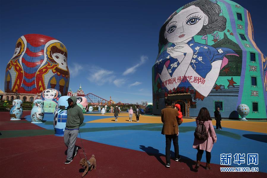 游客在满洲里套娃广场游览(9月6日摄)。内蒙古自治区满洲里市位于中俄边境地区,改革开放以来,凭借独特地缘优势,已发展成为中国最大的陆运口岸城市。2017年,中俄双边贸易额超过840亿美元,同比增长20.8%,满洲里口岸承担着中俄贸易60%以上的陆路运输业务。经济的发展改善了满洲里的城市面貌和人居环境,为这座边境城市增添了魅力。新华社记者 高静 摄