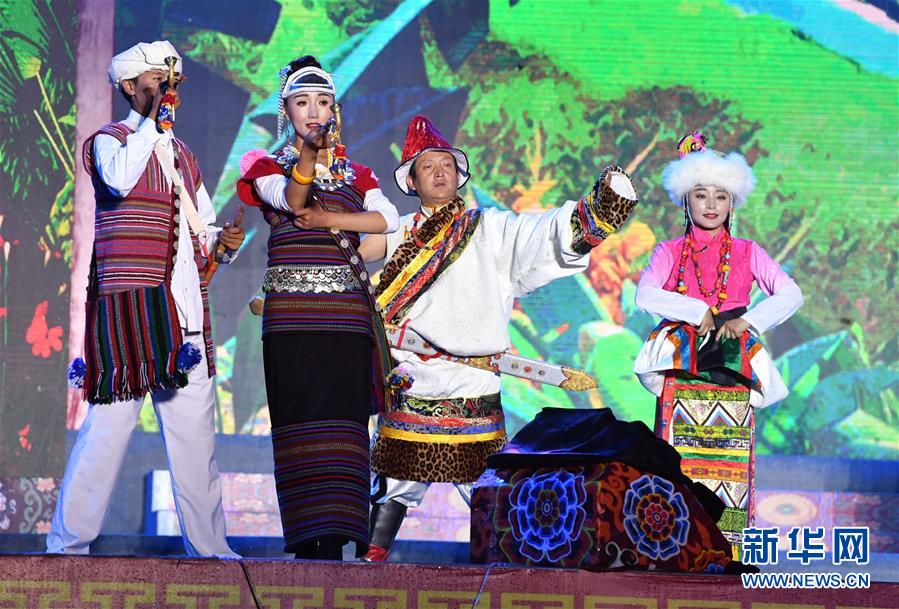 9月10日晚,西藏林芝市民族艺术团在鲁朗国际小镇向前来参加第四届中国西藏旅游文化国际博览会林芝分会场暨2018西藏林芝雅鲁藏布生态文化旅游节的国内外宾朋,献上了一场具有浓郁民族特色的歌舞晚会。 新华社记者 张汝锋 摄