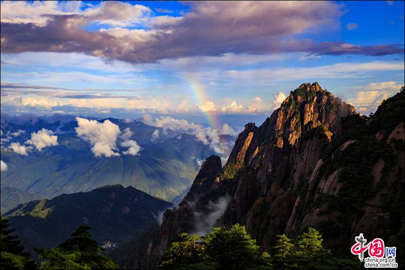 奇松、怪石、云海、温泉、冬雪被称为“黄山五绝”。曾给《徐霞客游记》作序的清人潘耒,在赞美黄山云海时写道:“黄山则四面数百里皆山,各山烟云,汇成大海,浩渺无涯,而此山独高,登之无所不瞩,风掀目耀,变眩万端。”