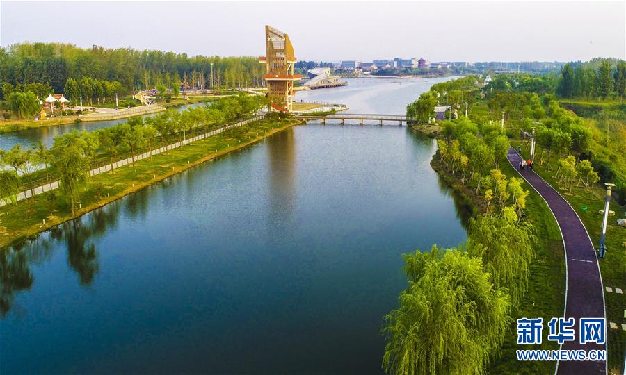这是河北省枣强县北湖公园一角(9月12日无人机拍摄)。 新华社记者李晓果摄