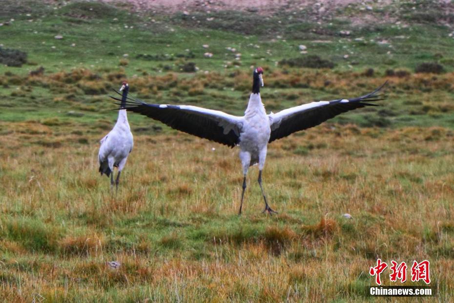“鸟类大熊猫”黑颈鹤现身甘肃肃南草原
