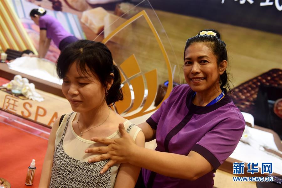 9月15日,在广西南宁国际会展中心,人们体验泰式按摩。 新华社记者赵丁喆摄