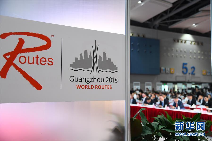 这是9月16日拍摄的世界航线发展大会上的论坛现场。 当日,2018年世界航线发展大会在广州开幕。来自全球110多个国家和地区的300多家航空公司、700多家机场管理机构与130多家政府及旅游机构参加本届大会。 新华社记者 邓华 摄
