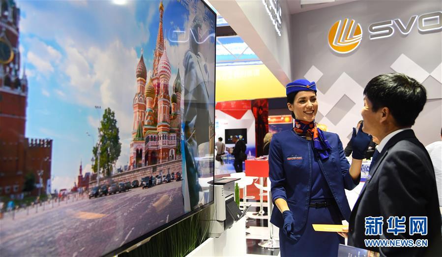 这是参加世界航线发展大会的莫斯科机场展区(9月16日摄)。 9月16日,2018年世界航线发展大会在广州开幕。来自全球110多个国家和地区的300多家航空公司、700多家机场管理机构与130多家政府及旅游机构参加本届大会。 新华社记者 邓华 摄