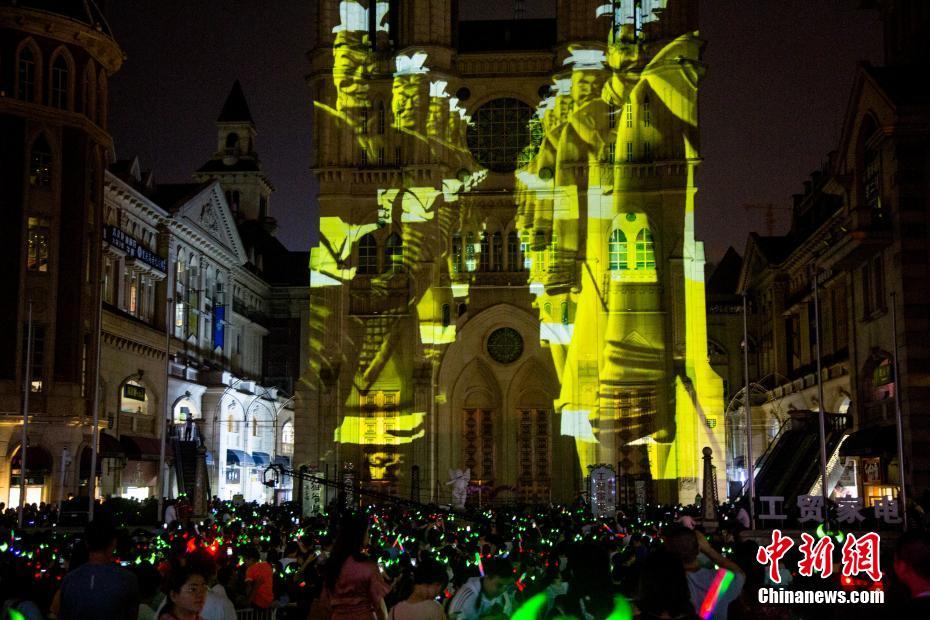 9月16日晚,光谷·光影嘉年华光影秀在武汉光谷步行街举行。这次光影秀利用了4D成像、全息技术等,将科技与艺术、光影与建筑完美融合,美轮美奂的场景吸引了众多市民与游客前来观看。 中新社记者 张畅 摄