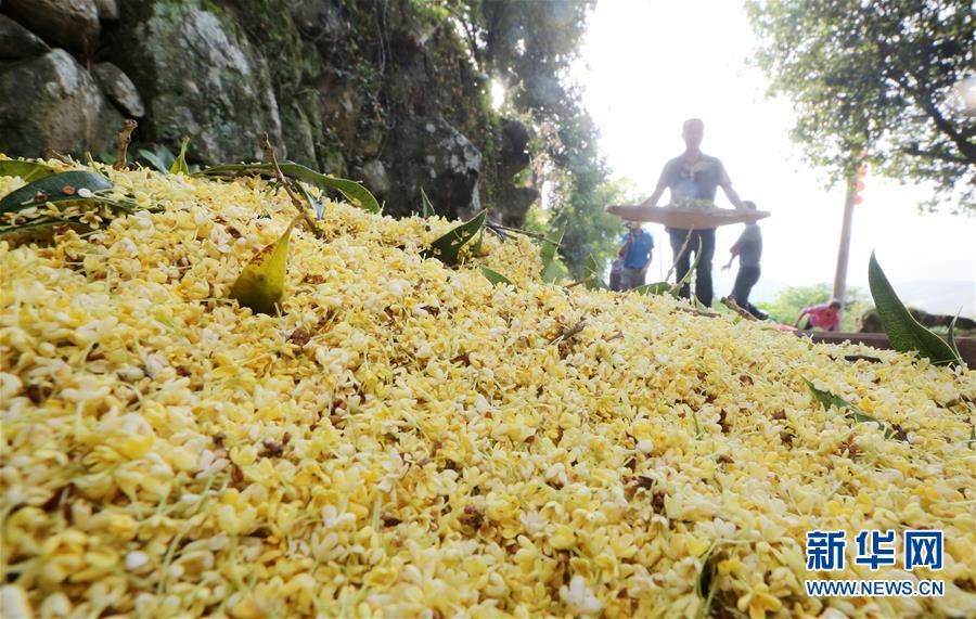 9月18日,安溪县虎邱镇芳亭村村民在打收桂花。