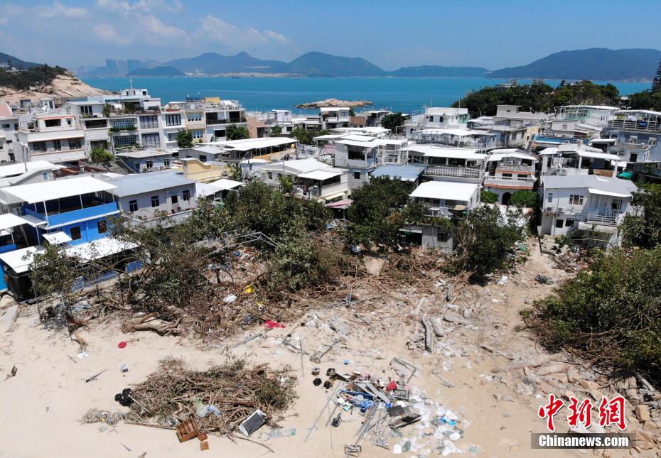 9月19日,强台风“山竹”已经过去三天,但进入香港石澳渔村的道路仍未恢复正常,大巴车依旧停驶。石澳泳滩、后滩泳滩等地满目疮痍,周星驰电影《喜剧之王》里的多个外景地被摧毁,著名的婚纱摄影景点“蓝桥”(情人桥)更是被台风引起的风暴潮彻底摧毁,荡然无存。图为石澳泳滩大批树木倒塌,杂物堆积在海滩上。中新社记者 张炜 摄