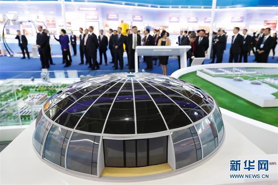 9月19日,观众在参观展览上展出的光伏住宅小屋模型。9月19日,宁夏回族自治区成立60周年大型成就展在银川国际会展中心开幕。新华社记者 沈伯韩 摄