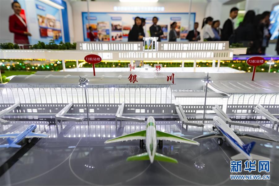 9月19日,观众在参观展览上展出的银川河东国际机场综合交通枢纽模型。9月19日,宁夏回族自治区成立60周年大型成就展在银川国际会展中心开幕。新华社记者 沈伯韩 摄