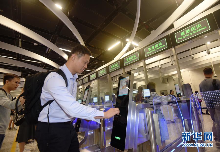 9月23日,在香港西九龙站,乘客在使用自动闸机办理离港通关。