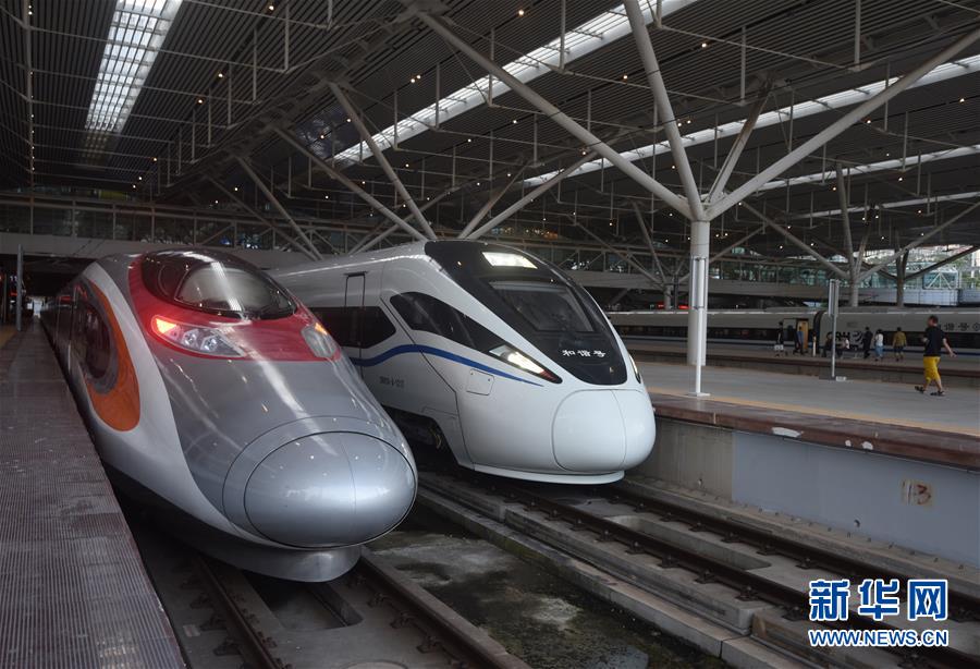 9月23日在深圳北站拍摄的和谐号(右)和动感号。