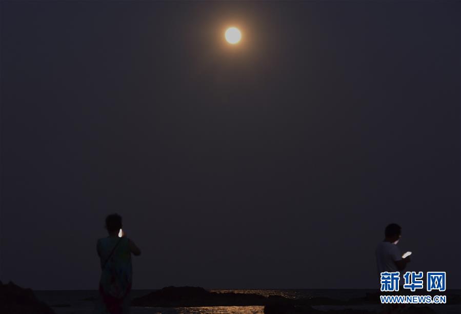 9月24日在海南博鳌海滨拍摄的月亮。当日是中秋节,人们共赏明月,庆祝佳节。 新华社发(蒙钟德 摄)
