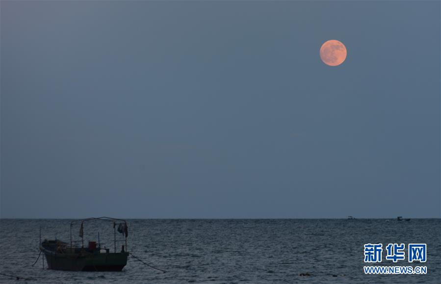 9月24日,在海南博鳌海滨,一轮明月挂在天空。当日是中秋节,人们共赏明月,庆祝佳节。 新华社发(蒙钟德 摄)