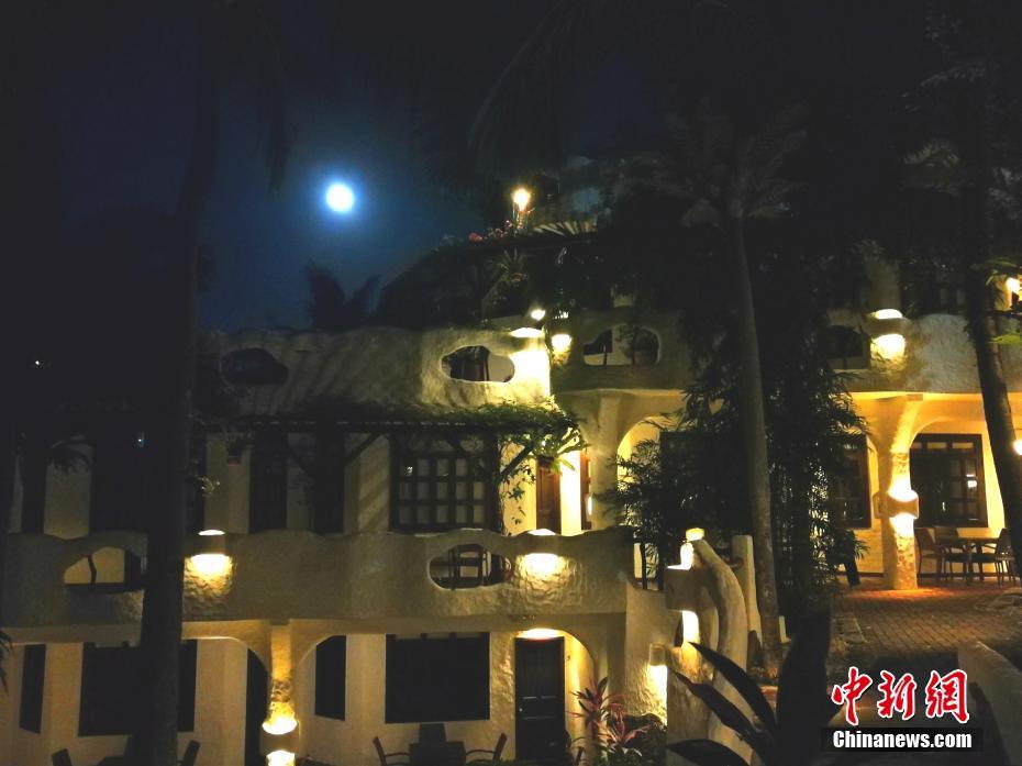 菲律宾海豚湾Puerto Galera(简称PG岛)是著名的潜水胜地,当地聚集着来自世界各地的潜水爱好者,不少中国潜水客来此过中秋节。图为9月24日晚,PG岛白沙滩一希腊风格酒店的中秋月。 中新社记者 关向东 摄