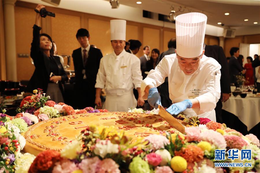 9月25日,在日本东京,工作人员在欢迎宴会上切开特制的大月饼。 主题为“2018年中秋节在东京”的第六届中日旅游交流活动25日在东京拉开帷幕。百余名中日两国各界人士出席了当天举行的活动开幕式和欢迎宴会。 新华社记者杜潇逸摄