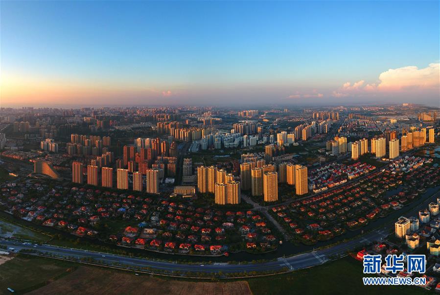 这是夕阳下的广西北海市区(9月25日无人机拍摄,拼接照片)。 新华社记者 黄孝邦 摄