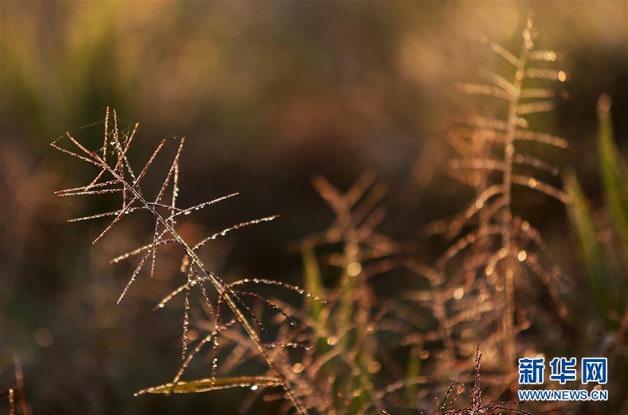 9月27日,山东省临沂市郯城县郯城街道路边的小草上挂满露珠。 秋分已过多日,一花一草,一叶一木渐露秋容。 新华社发(张春雷 摄)