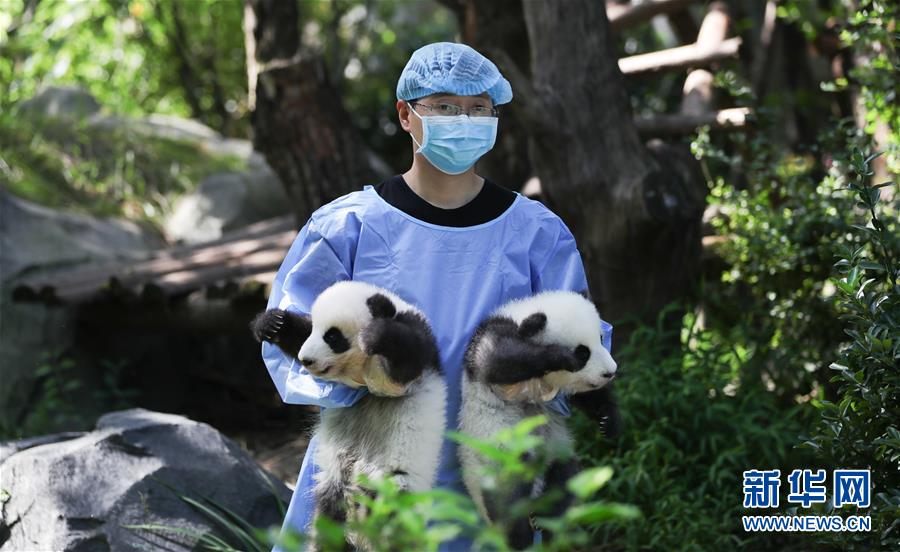 这是9月28日在成都大熊猫繁育研究基地太阳产房拍摄的大熊猫宝宝。 当日,成都大熊猫繁育研究基地为2018年出生的12只新生大熊猫宝宝举行了一场别开生面的亮相活动。 新华社发