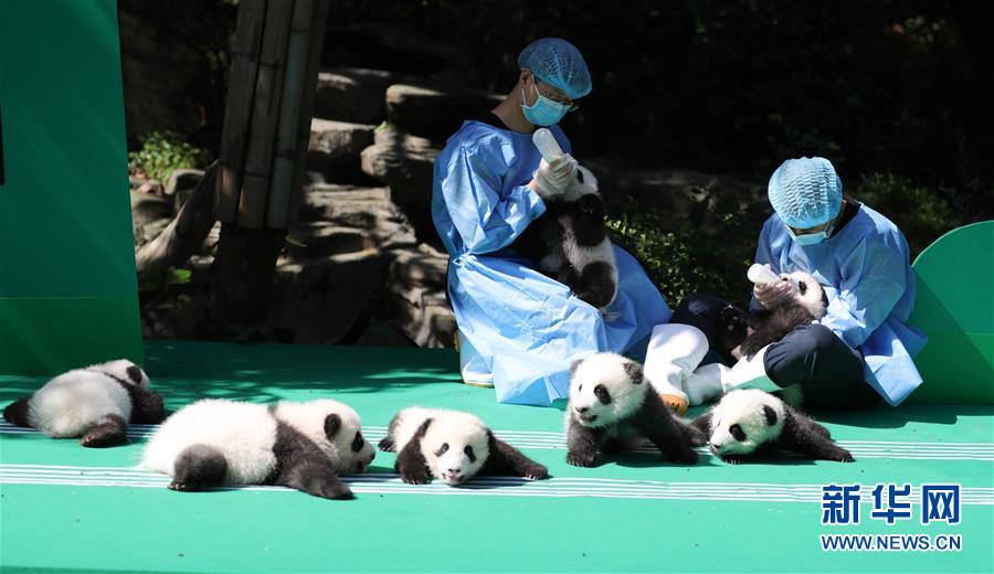 这是9月28日在成都大熊猫繁育研究基地太阳产房拍摄的大熊猫宝宝。 当日,成都大熊猫繁育研究基地为2018年出生的12只新生大熊猫宝宝举行了一场别开生面的亮相活动。 新华社发
