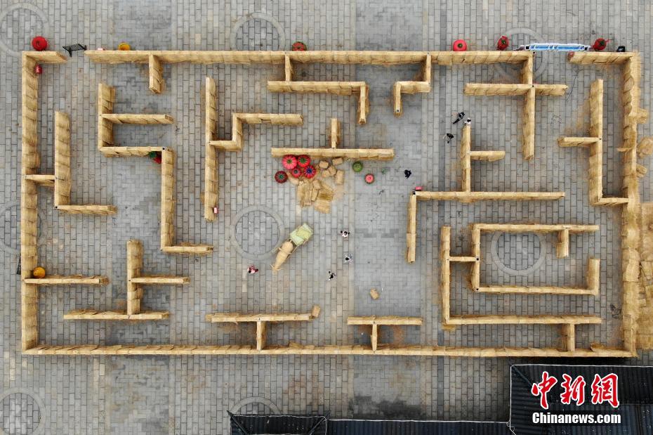 9月28日,游客在江苏常州春秋淹城内用稻草搭建而成的“迷宫”内穿梭,在丰收季体验独特的田园风光。中新社记者 泱波 摄