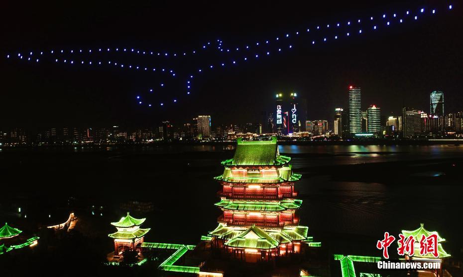 南昌百架无人机灯光秀表演迎国庆 缤纷绚丽灿若星辰