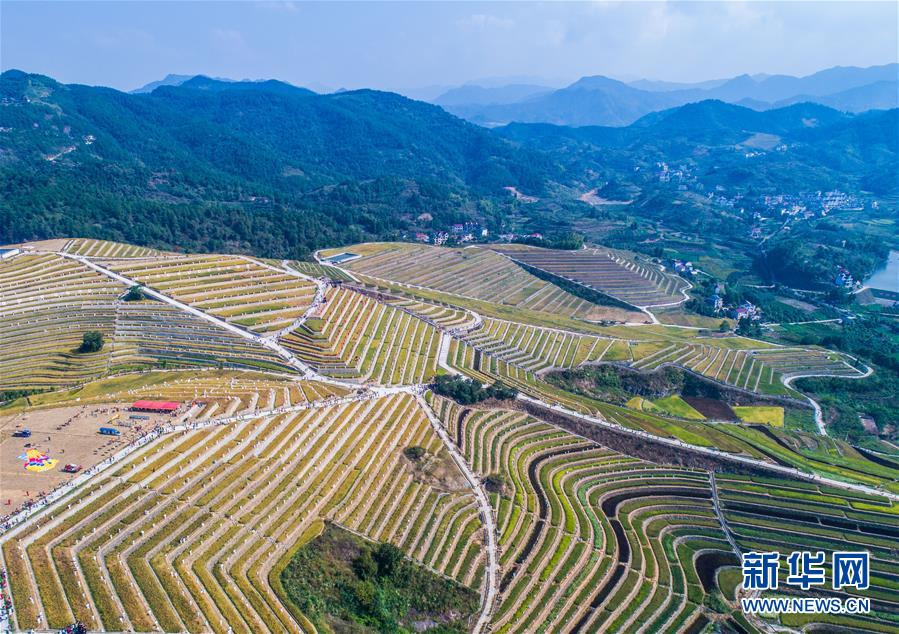 9月29日,太极拳爱好者在建德市大洋镇高垣村的千亩梯田上进行表演(无人机拍摄)。 当日,2000多名太极拳爱好者在浙江省建德市大洋镇高垣村的千亩梯田上参加太极拳表演,吸引很多当地人和游客前来观赏,助力当地金秋时节乡村旅游。 近两年来,大洋镇充分利用土地整治后形成的千亩梯田打造农业观光综合体,发展综合型农业观光旅游,为乡村振兴注入新活力。 新华社记者徐昱摄