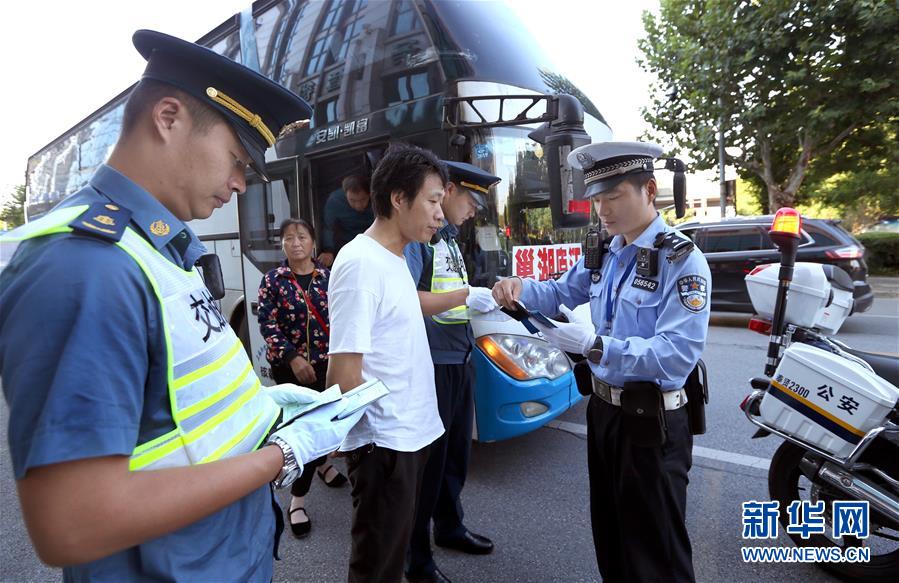 9月29日,联合执法人员将站外非法载客的长途客运车拦下检查。