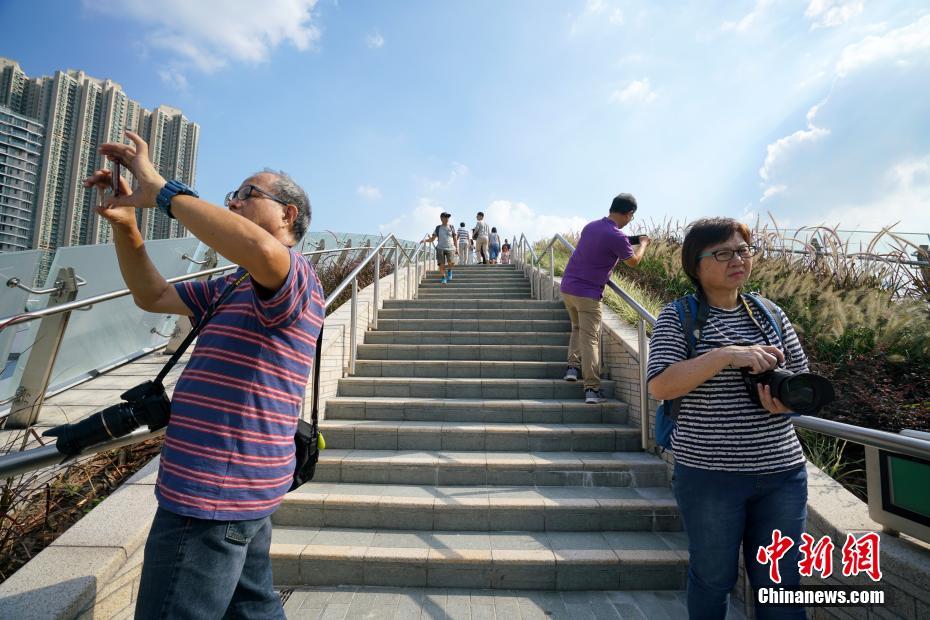 9月29日是高铁香港段正式通车的第七天,也是开通后的第一个周末,位于西九龙站顶的天空走廊迎来众多摄影爱好者拍摄靓照。中新社记者 张炜 摄