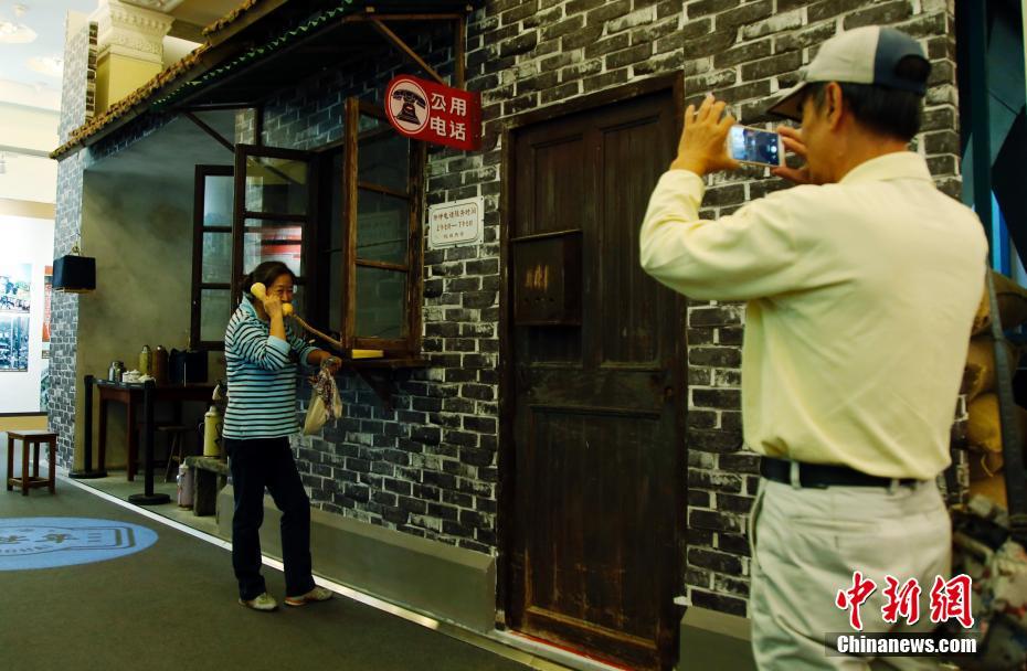 参观者在“公用电话”前拍照留念。汤彦俊 摄