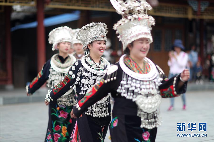 10月3日,在贵州省黔东南苗族侗族自治州榕江县平阳乡小丹江苗寨,苗族村民身着盛装跳起芦笙舞。 新华社发(杨成利 摄)