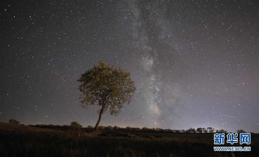 这是10月2日在河北省承德市御道口风景区拍摄的夜幕下的草原。