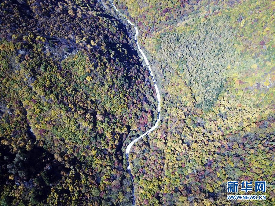 这是10月2日无人机拍摄的河北省承德市隆化县茅荆坝国家森林公园秋景。