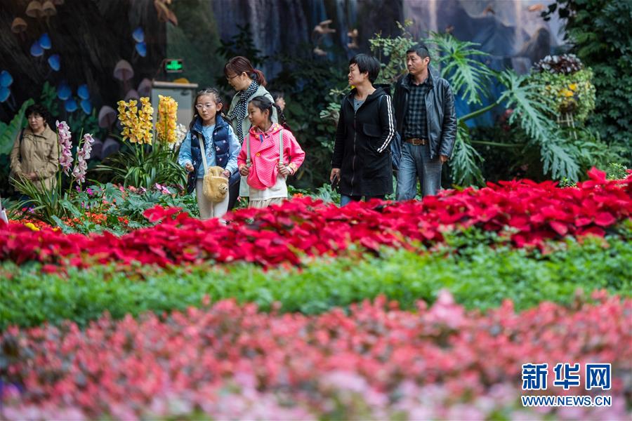 10月4日,游客在昆明“花之城”花卉主题温室参观。 新华社记者 胡超 摄