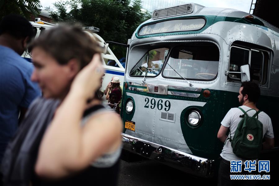 当日,由纽约交通博物馆主办的第25届纽约巴士节在布鲁克林举行,十余辆巴士敞开车门,向民众展示了纽约地面公共交通工具80多年来的变迁。