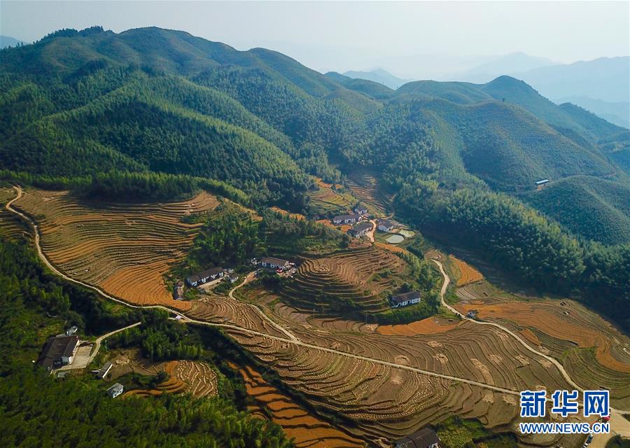 这是上堡乡的高山梯田(10月9日无人机拍摄)。 新华社记者 胡晨欢 摄