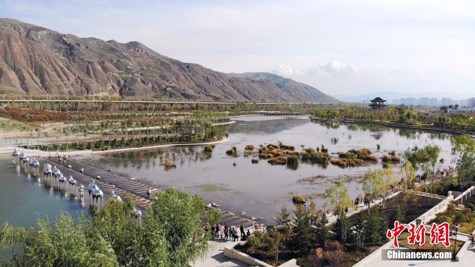 10月10日,西宁北川河湿地公园中,带有民族历史特色的水域。据了解,北川河湿地公园是西宁市面积最大的湿地公园,总面积约173.5公顷,整个水域面积约为95公顷,绿化面积约为60公顷,水景和绿景占全园面积的70%以上,拥有六个湖,五大园区。该湿地公园的的建成对西宁这样一座高寒高海拔干旱地区城市来说,有利于气候环境的改善。中新社记者 马铭言 摄