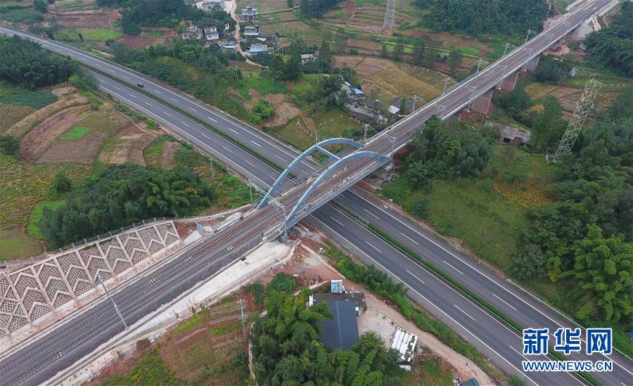 这是10月11日无人机拍摄的川藏铁路成雅段跨乐雅高速公路大桥。新华社记者薛玉斌摄