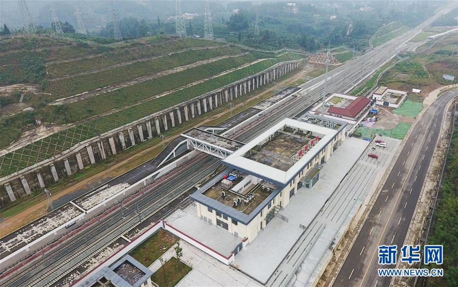 成雅铁路成朝段朝阳湖站(10月14日无人机拍摄)。新华社记者薛玉斌摄